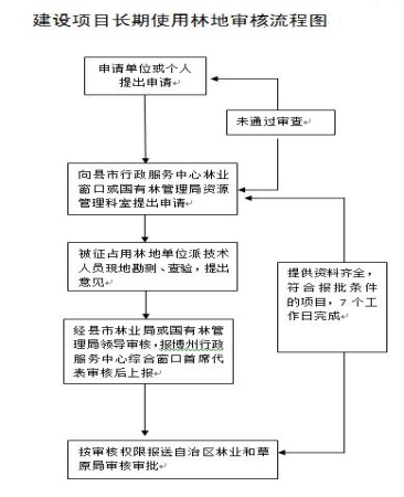 1.《中华人民共和国森林法实施条例》(国务院令第278号,根据2011年1月8日《国务院关于废止和修改部分行政法规的决定》修改)第十六条:勘查、开采矿藏和修建道路、水利、电力、通讯等工程,需要占用或者征收、征用林地的,必须遵守下列规定:(一)用地单位应当向县级以上人民政府林业主管部门提出用地申请,经审核同意后,按照国家规定的标准预交森林植被恢复费,领取使用林地审核同意书。用地单位凭使用林地审核同意书依法办理建设用地审批手续。占用或者征收、征用林地未经林业主管部门审核同意的,土地行政主管部门不得受理建设用地申请。(二)占用或者征收、征用防护林林地或者特种用途林林地面积10公顷以上的,用材林、经济林、薪炭林林地及其采伐迹地面积35公顷以上的,其他林地面积70公顷以上的,由国务院林业主管部门审核;占用或者征收、征用林地面积低于上述规定数量的,由省、自治区、直辖市人民政府林业主管部门审核。占用或者征收、征用重点林区的林地的,由国务院林业主管部门审核。 (三)用地单位需要采伐已经批准占用或者征收、征用的林地上的林木时,应当向林地所在地的县级以上地方人民政府林业主管部门或者国务院林业主管部门申请林木采伐许可证。(四)占用或者征收、征用林地未被批准的,有关林业主管部门应当自接到不予批准通知之日起7日内将收取的森林植被恢复费如数退还。