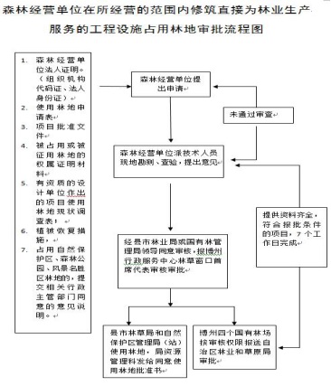 符合《中华人民共和国行政许可法》、《中华人民共和国森林法》、《中华人民共和国森林法实施条例》、《建设项目使用林地审核审批管理办法》(国家林业局令第35号)等法律法规规章,森林经营单位在所经营的范围内修筑直接为林业生产服务的工程设施占用林地,并且申请材料齐全、符合受理条件要求。 |