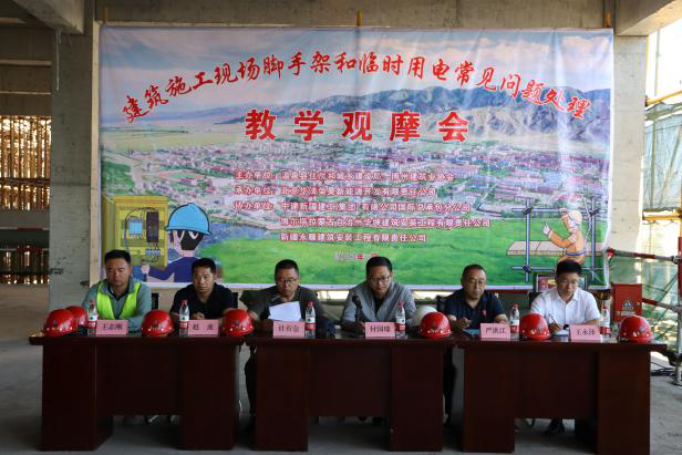 此次教学观摩活动,采取理论与实践、观摩与交流、警示与服务相结合的方式,由新疆隆泉建设集团有限公司安全质量技术负责人赵虎进行授课,对建筑施工现场钢管脚手架所使用的钢管、扣件等材料质量标准和脚手架搭设程序要求,以及临时用电的方案编制、配电箱和线路的敷设要求等方面进行了规范性培训,通过实际案例及图片讲解分析了施工现场脚手架、临时用电中容易出现质量问题,并提出整改解决办法。随后,各参训人员在温泉县清洁能源项目施工现场进行了脚手架和临时用电安全管理标准化实地观摩,并进行经验交流,通过实体样板深刻了解了施工现场脚手架、临时用电的规范做法。