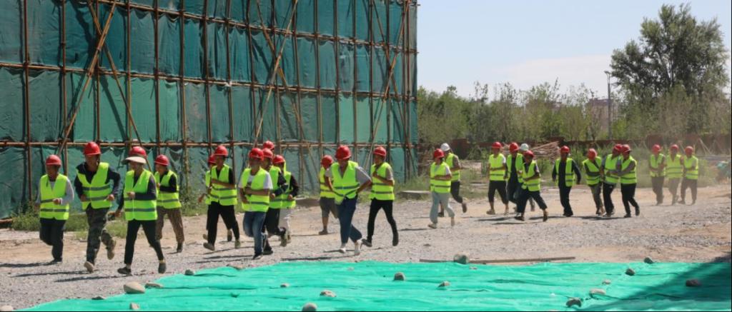 本次演练活动模拟了建筑工程施工现场地震应急疏散、伤员应急救援、灭火等三个突发事故。上午12点00分,随着警报铃骤然响起,胡杨河畔园林酒店建设项目地震应急演练开始,指挥员迅速组织现场人员疏散,从业人员在指挥员的带领下,离开施工现场,按照逃生路线快速、有序地撤离到户外空旷的安全区域。精河县公安局立即对现场进行封锁。发现疏散中有一人重伤两人轻伤,立即拨打120急救电话报告地点及人员伤势,同时对伤员进行初步救治,随后医院人员到达现场将伤员运往医院救治,精河县消防救援局到达现场进行灭火、整个演练过程人员到位迅速、安排有序、操作程序得当。