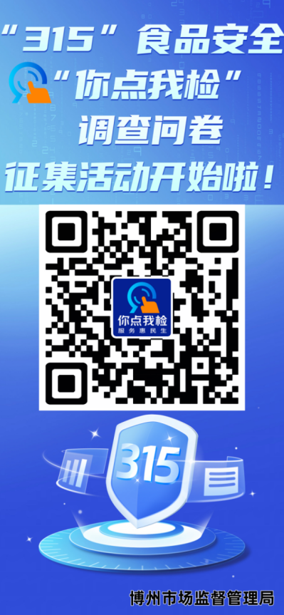 扫描下方二维码,点击2026年新疆维吾尔自治区博尔塔拉蒙古自治州食品安全“你点我检 服务惠民生”活动(第3期)勾选出您最关心、最关注的食品品类,我们将根据您的“点单”开展靶向抽检,让检验检测服务精准对接百姓需求,抽检结果将在博州人民政府官网进行公示,用透明数据回应群众关切,期待您的积极参与!