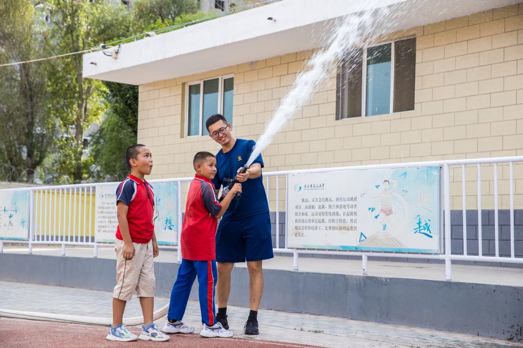 此外,学生们还参观了消防车,体验了消防水枪及充气逃生帐篷,听取消防员对各类消防器材装备的介绍。宣传人员还为学生们发放了学习用品,鼓励他们努力学习,现场氛围浓烈,学生们争相与消防员合影留念。