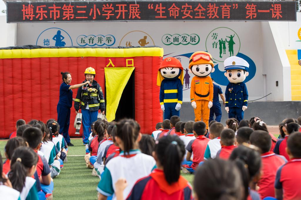 为全面做好新学期中小学生消防安全教育工作,近日,博州消防救援支队走进辖区学校开展消防安全开学第一课活动。