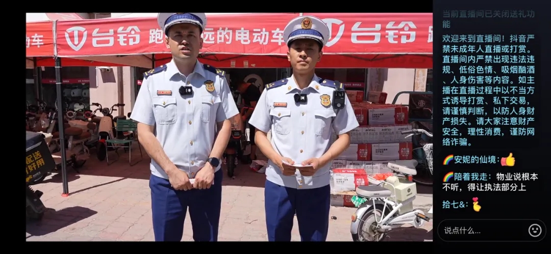 直播过程中,消防监督员走进博乐市天祥国际建材城台铃电动自行车销售店,详细讲解了电动自行车在选购、使用和维护等方面的知识,并提醒广大消费者要正确挑选电动自行车,不要盲目改装电动自行车。