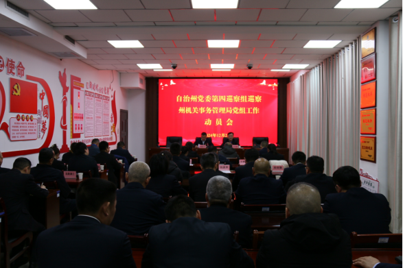 根据自治州党委关于巡察工作的统一部署,12月27日下午,自治州党委第四巡察组巡察州机关事务管理局党组工作动员会召开。会前,自治州党委第四巡察组组长达瓦加甫主持召开与州机关事务管理局党组主要负责人和班子成员的见面沟通会,传达了州党委书记专题会议精神,通报了本次巡察的有关工作任务和相关要求。动员会上,自治州党委第四巡察组组长达瓦加甫作了动员讲话,对做好巡察工作提出要求。州机关事务管理局党组副书记、局长聂振龙主持会议并作表态发言。