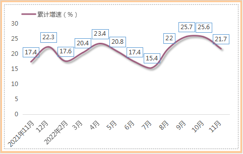 经自治区统计局审定,1—11月,博州规模以上工业增加值完成52.44亿元,同比增长21.7%,增速较1—10月回落3.9个百分点。11月当月规模以上工业增加值完成5.04亿元,同比下降4.1%。