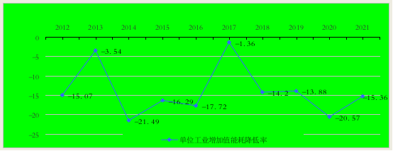 ㈡工业节能提升明显。加快传统产业升级改造,着力培育新动能,加强重点行业能效管理,有力推动了节能工作深入开展,工业节能对全州节能的支撑作用进一步增强。党的十八大以来,全州单位工业增加值能耗累计下降59.6 %。2021年,全州单位工业增加值能耗较2020年下降15.4%。工业节能对完成单位GDP能耗下降目标发挥了重要支撑作用。