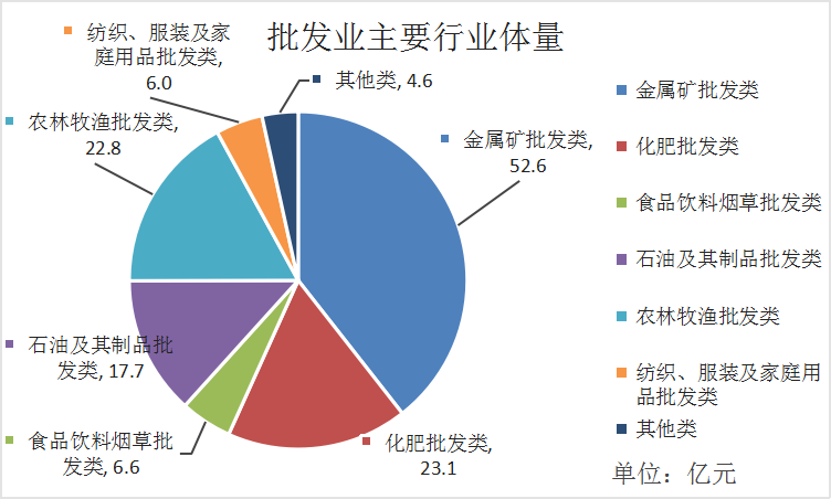 从批发零售业的产品构成体量来看,从大到小依次为金属矿批发(销售额52.6亿元,同比增长316.8%,占限上批发业商品销售额的40%)、化肥批发(销售额23.1亿元,同比下降4.6%,占限上批发业商品销售额的17.3%)、农林牧渔批发(销售额22.8亿元,同比下降7.4%,占限上批发业商品销售额的17.1%)。除以上常规发力点,本月皮棉销售业逐步恢复,增速由负转正,棉麻批发类销售额16亿元,当月同比增长28.3%,1—4月累计同比增长3.1%,较1—3月回升4.1个百分点。