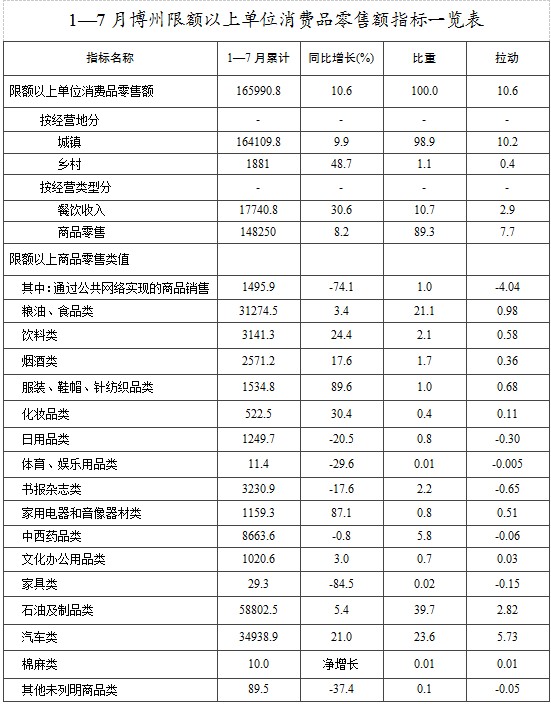 1—7月,全州限额以上单位消费品零售额完成16.6亿元、增长10.6%,受以旧换新政策暂停影响,7月当月完成2.23亿元、下降6%,承压下行态势显现。