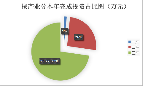 ㈡三次产业“一增两降”。第一产业完成投资0.57亿元,同比下降69.2%;第二产业完成投资9.09亿元,同比增长8%;第三产业完成投资25.77亿元,同比下降8.3%。分别占投资总额的1.6%、25.7%、72.7%。第三产业仍发挥主力军作用。