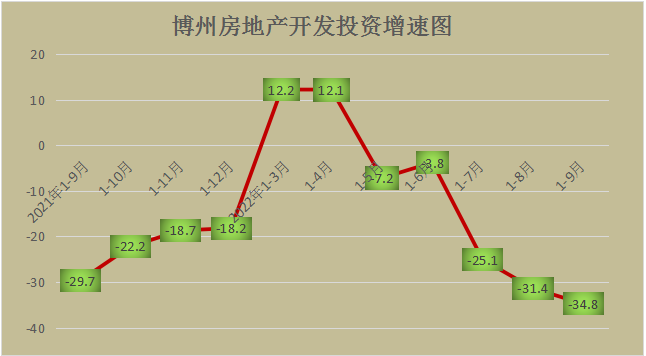 经自治区统计局审定,前三季度博州房地产开发投资完成11.06亿元,同比下降34.8%,占全州固定资产投资总额的4.7%,降幅较1—8月扩大3.4个百分点。9月完成投资1.64亿元,同比下降49.3%。