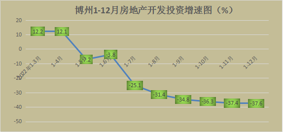 经自治区统计局审定,2022年博州房地产开发投资完成13.13亿元,同比下降37.6%,降幅高于全区(-22.8%)14.8个百分点,占全州固定资产投资总额的4.5%。12月完成房地产开发投资0.09亿元,同比下降62.2%。