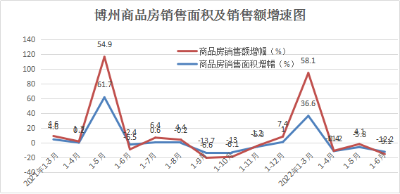 上半年,博州商品房销售面积19.6万平方米,同比下降12.2%,其中,住宅销售面积18.88万平方米,同比下降10.9%;商品房销售额8.19亿元,同比下降3.1%,其中,住宅销售额7.57亿元,同比下降4.3%。