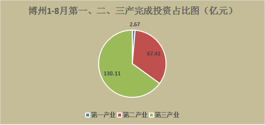 ——第二产业中光伏发电项目成为拉动博州固定资产投资增长亮点。第一产业完成投资2.67亿元,同比下降42.0%,占投资总额的1.3%;第二产业完成投资67.41亿元、增长80.9%,占投资总额的33.7%,主要依赖工业投资中光伏发电项目拉动;第三产业完成投资130.11亿元,同比下降12.3%,占投资总额的65.0%。