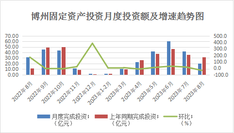 经自治区统计局审定,1—8月,博州固定资产投资(不含农户)完成200.19亿元,同比增长5.3%,增速较1—7月回落8.1个百分点。8月当月完成固定资产投资20.63亿元、下降35.1%。