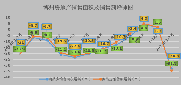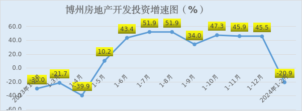 房地产开发市场暂处下降区间。1-2月,博州房地产开发企业完成投资1224万元,同比下降20.9%,降幅较上年同期收窄9.1个百分点,影响全州固定资产投资增长1.6个百分点。其中,住宅投资559万元、下降45.1%;商业营业用房投资654万元、增长4.8倍;其他投资11万元、下降80.7%。