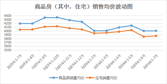 ㈠房地产销售类型转变。1—7月,博州商品房销售面积18.1万平方米,同比增长1.9%,增幅较1—6月回落0.4个百分点。其中,住宅销售面积15.13万平方米、下降7.2%,降幅扩大3.5个百分点;商业营业用房销售面积2.52万平方米、增长75.2%;其他房屋销售面积0.44万平方米。