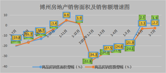 ㈠房地产开发投资降幅收窄。1—7月,博州房地产开发企业完成投资8.53亿元,同比下降33.6%,降幅较1—6月收窄10.7个百分点。其中,住宅投资4.73亿元、下降34.7%;办公楼投资0.10亿元、增长2.2倍;商业营业用房投资2.86亿元、下降33.4%;其他投资0.84亿元、下降33.8%。博乐市南城商业开发小区建设项目、博乐市北城商住小区建设项目、博乐·奥特莱斯建设项目、博乐市石榴大厦建设项目、博乐市万达商圈壹号街等项目发挥主拉动力。