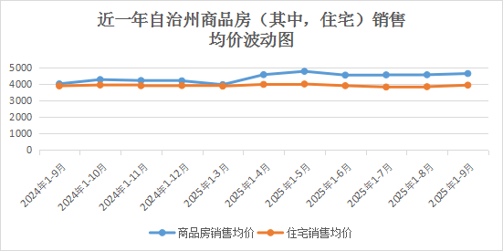 ㈡住宅销售均价排除区域影响趋于平稳。从房屋销售均价来看,博州商品房销售均价4619.44元/平米,较上年同期上涨621.75元/平米。其中,住宅销售均价3919.85元/平米,较上年同期提高46.15元/平米,主要受销售小区位置影响。商品房销售面积六成以上来自期房销售。