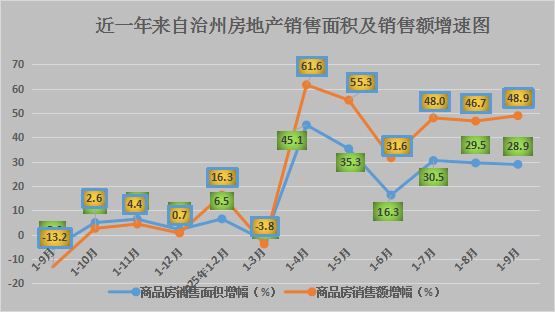 ㈠房地产销售类型仍在持续转变。前三季度,博州商品房销售面积27.92万平方米、增长28.9%,增幅较1—8月回落0.6个百分点,商品房销售额12.90亿元、增长48.9%,增幅较1—8月提高2.2个百分点。其中,住宅销售面积22.58万平方米、增长22.9%,住宅销售额8.85亿元、增长24.4%;商业营业用房销售面积5.34万平方米、增长87.4%,商业营业用房销售额4.05亿元、增长2.0倍。