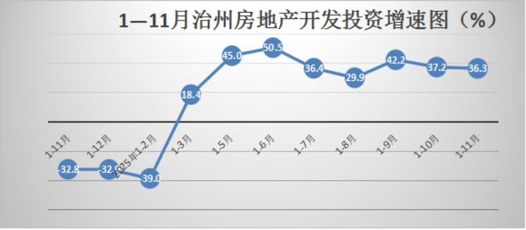 ㈠房地产开发投资仍保持快速增长。1—11月,自治州房地产开发投资完成17.43亿元,同比增长36.3%,占全州固定资产投资总额的3.8%,占比较上年同期提高0.1个百分点。11月完成房地产开发投资1.02亿元,同比增长22.8%。