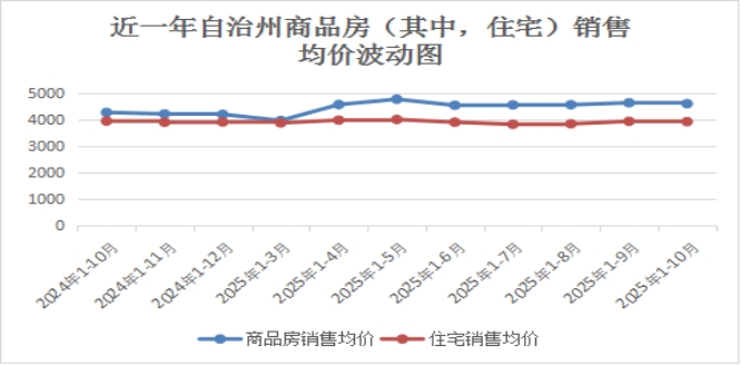 ㈡商品房销售均价波动。从房屋销售均价来看,全州商品房销售均价4586.15元/平米。其中,住宅销售均价3905.82元/平米。