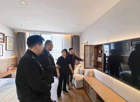 此次指导聚焦景区酒店安全生产作为关键环节,采取“实地核查+台账查阅+现场询问”模式,重点排查消防安全、设施设备等核心领域。在消防安全方面,详细检查疏散通道畅通性、消火栓有效性,查看消控室24小时值班制度落实情况。同时,指导服务组还查阅了四家酒店安全生产管理制度、应急演练记录,随机询问工作人员消防器材使用及应急处置流程掌握情况。针对发现的部分安全提示标识张贴不醒目、特种设备维保记录不够完整等问题,指导服务组把问题现场反馈。同时,向酒店负责人重申安全生产法律法规,强调要时刻绷紧安全弦,定期开展自查自纠,杜绝麻痹思想。
