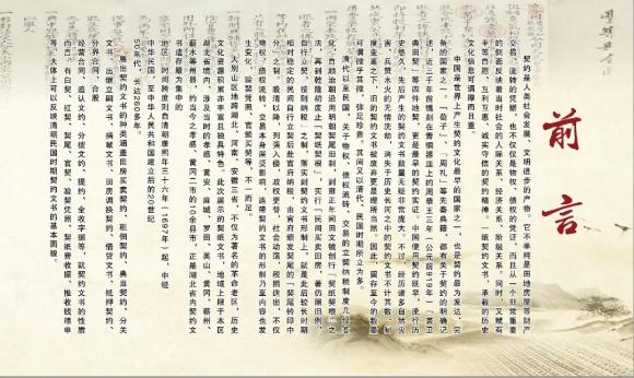 契约是人类社会发展、文明进步的产物。一纸契约文书,承载的历史文化信息可谓厚而且重。中国是世界上产生契约文化最早的国家之一,也是契约最为发达、完备的国家之一。