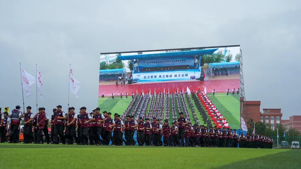8月19日,由自治区卫生健康委员会、自治区疾病预防控制局、自治区中医药管理局联合主办的2024年自治区卫生应急综合演练在伊宁市举行,全疆20支医疗应急队伍、720余人参加演练。博州紧急医学救援队、博州突发急性传染病防控队共20名队员参加此次应急演练。