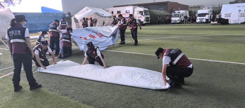 演练模拟聚集性不明原因肺炎疫情、地震灾害紧急医学救援全流程卫生应急处置。聚集性不明原因肺炎疫情处置场景包含病例发现与处置、常态化监测等12个科目,地震灾害紧急医学救援场景包含生命搜救和环境监测、检伤分类、无人机侦察与投送、心理危机干预等13个科目。