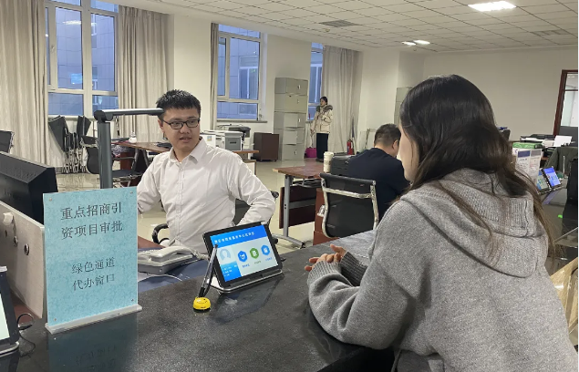 近日,记者走进博乐市政务服务中心,在 “高效办成一件事” 服务窗口前,目睹了市民苏比努尔为工作人员高效办理食品经营许可证而赞不绝口的一幕。